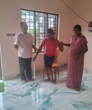 Sri Vijayan(65) is a resident of Parappara village near Vithura on the ourskirts of Thiruvananthapuram district. He had to get his left foot amputated due to blocked blood circulation. Since then he was struggling due to restricted movement, unable to move even inside his house. The wound was not healing due to higher pressue applied on the smaller foot area. His family requested for help to buy an orthopeadic footwear. Sakshama with the help of a sponsor got a footwear made as per his measurements. On 23rd March Sakshama's Nedumangad Taluk team visited his house and handed over the supportive device to Sri Vijayan.
